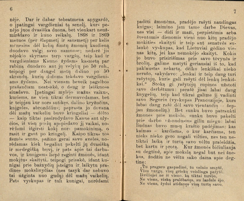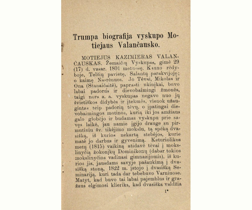 Motiejus Valančius, vos tapęs vyskupu, ėmė rūpintis katalikišku švietimu. Jau 1850 gruodį jis nurodė, kad prie kiekvienos parapijos bažnyčios ar filijos būtų mokykla. Šiuos savo nurodymus jis kartojo ir vėliau, žinių apie parapines mokyklas reikalavo vizitacijų metu. Jo tikslas pirmiausia buvo išmokyti ir neturtingus vaikus skaityti, kad jie sugebėtų melstis iš knygų, skaityti gimtąja kalba išspausdintas religines knygas. Visgi jis suprato, kad vien maldų knygų nepakanka, todėl ir pats rašė ir leido pasauliečiams skirtas knygas. Ši kūryba – tiek pasakojimo forma, tiek ir pamokymai – buvo apgalvotai suskirstyta taip, kad sau tinkamas knygas rado visi: tiek pradedantys skaityti vaikai, tiek suaugusieji.