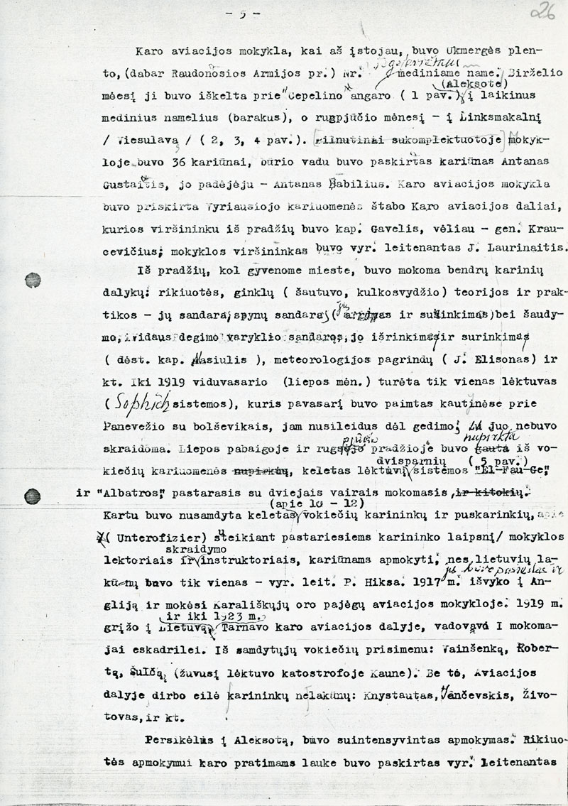 Karo aviacijos mokykloje 1919–1920 m. Atsiminimų apie Aviacijos mokyklą fragmentas. [Vilnius, iki 1987 m.]
