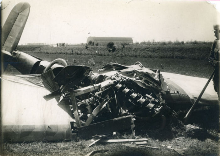Nesėkmingai nutūpęs treniruočių lėktuvas Rumpler C. I oro uoste.
