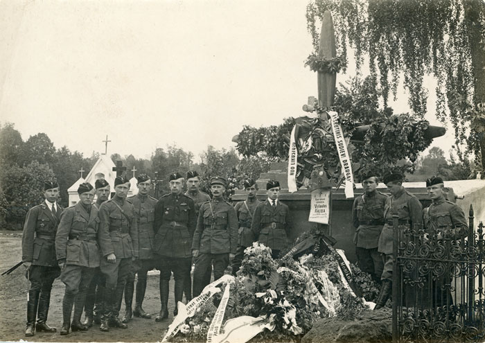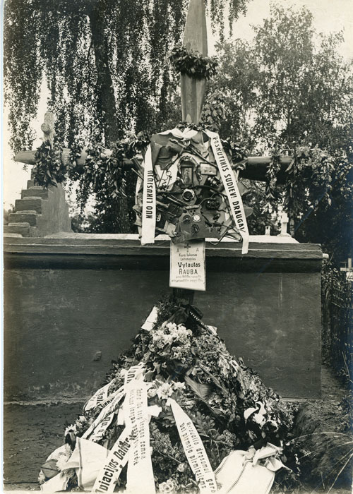 Prie žuvusio lakūno leitenanto Vytauto Raubos kapo.