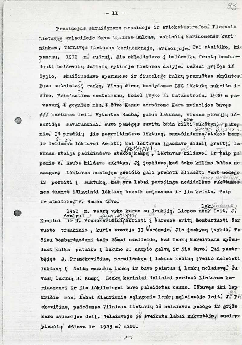 Karo aviacijos mokykloje 1919–1920 m. Atsiminimų apie avarijas fragmentas. [Vilnius, iki 1987 m.]
