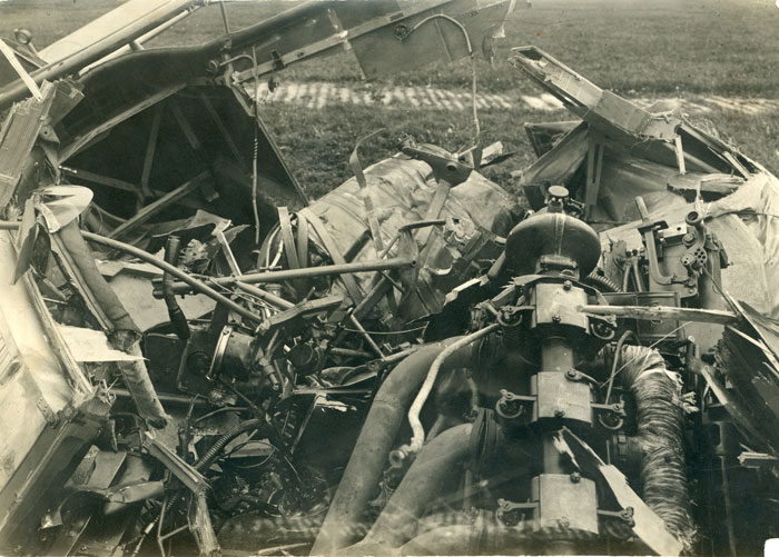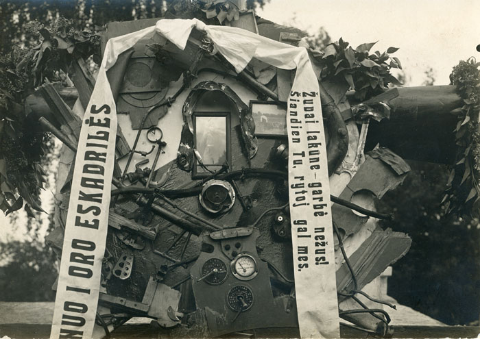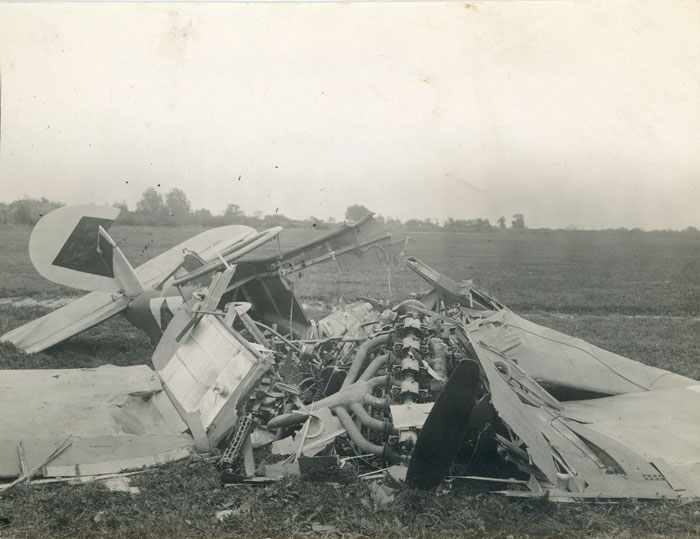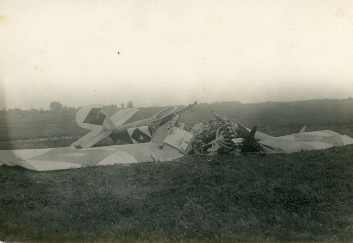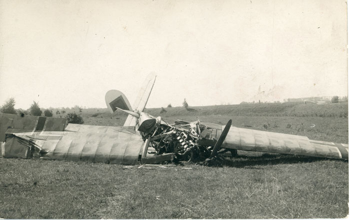Sudužęs lakūno leitenanto Vytauto Raubos lėktuvas.