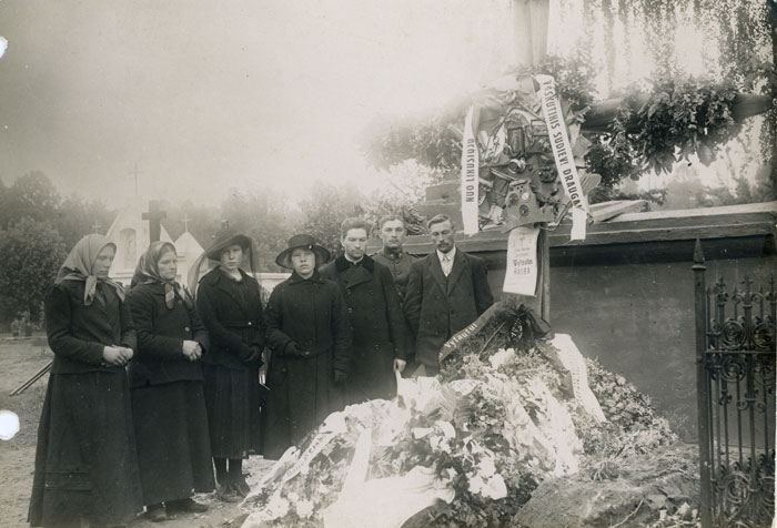Prie žuvusio lakūno leitenanto Vytauto Raubos kapo artimieji ir giminės.