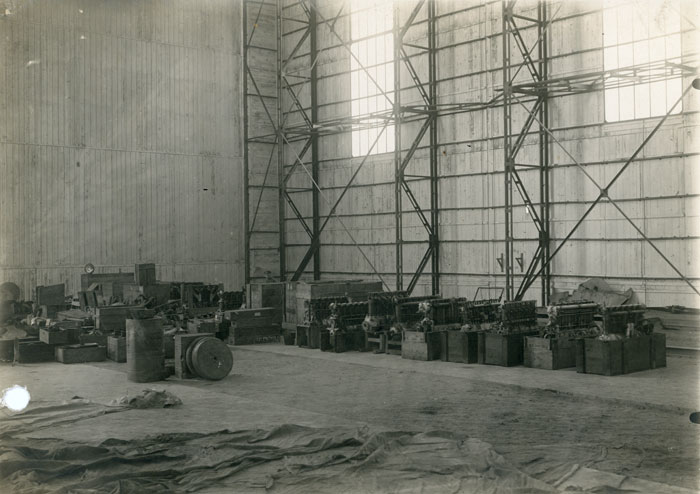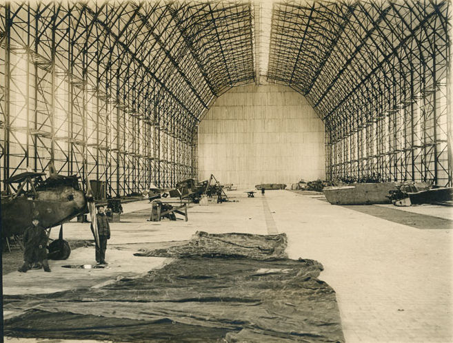 Dirižablio angaras, kuriame po 1919 m. lapkričio kovų su bermontininkais buvo sukrauti iš jų paimti lėktuvų varikliai bei kitas aviacijos turtas.