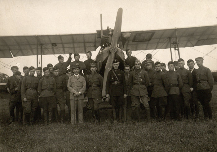 Lėktuvą valdė pilotas Pranas Hiksa, fotografavo žvalgas Viktoras Živatovas. Kaunas, 1919 m. rugpjūčio 6 d.