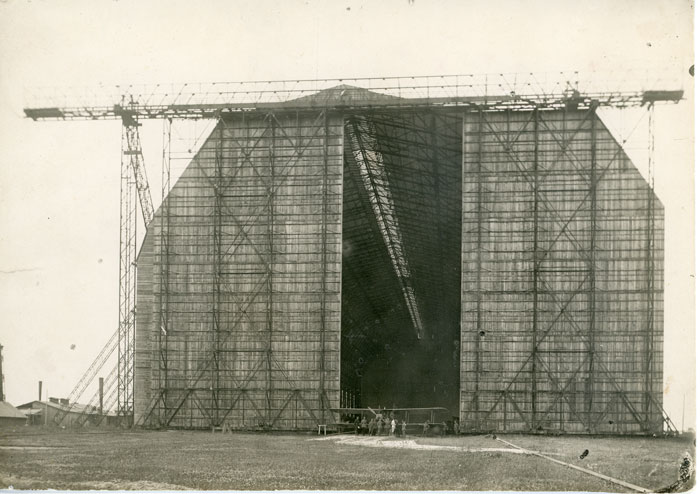 Aviatorių pramintas Cepelino angaru. Jo ilgis – 240 m, plotis – 55 m., aukštis – 40 m. Nugriautas 1929 m. Kaunas, [apie 1919 m.].