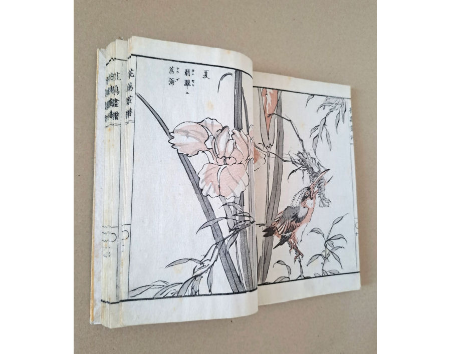 Negana pasakyti, kad albumėliai įrišti japonišku stiliumi. Tai taip vadinamo „fukuro-todži“ (jap. 袋綴じ, angl. „pouch binding“) stiliaus pavyzdys – įrišimas kišenės principu. Tai buvo populiariausias knygų įrišimo stilius Japonijoje, šiuo principu įrišta daugiausiai knygų. Tekstas buvo spausdinamas tik vienoje lapo pusėje, tada lapas perlenkiamas per pusę (viduje susidaro kišenė), o dešinysis kraštas susiuvamas.