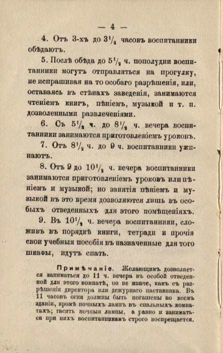 iki 17.30 – auklėtiniai gali eiti pasivaikščioti, neprašydami leidimo, arba lieka institute ir skaito, dainuoja, groja bei užsiima kitomis leidžiamomis pramogomis,