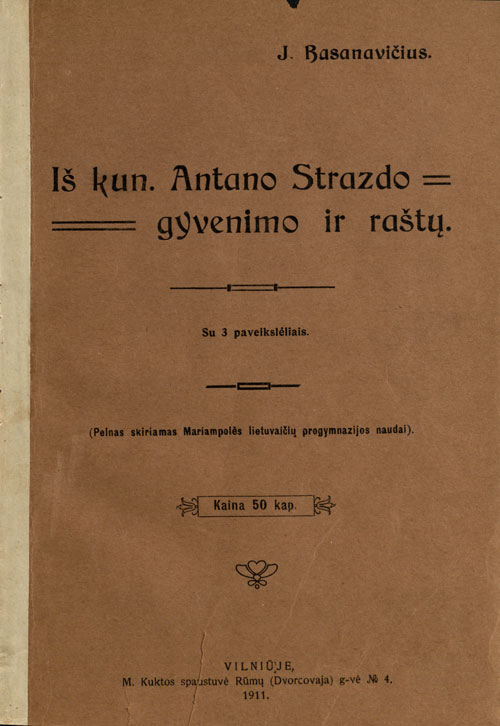 J. Basanavičiaus parengtame leidinyje nurodoma: „...teko pirmučiausiai kun. A. Strazdo tarmę restauruoti, ką atliko tos tarmės žinovas – d-ras J. Šlapelis ir K. Būga“.