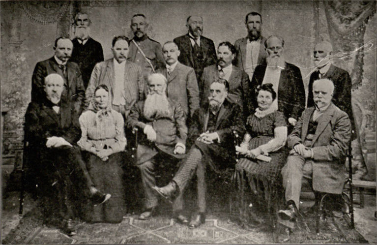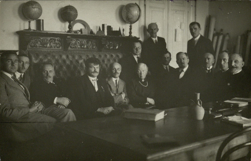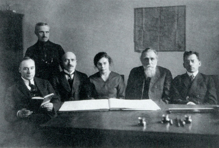 Sėdi iš kairės: Vladas Narbutas, Jurgis Šlapelis, Veronika Alseikienė, Jonas Basanavičius, Danielius Alseika, stovi Antanas Krutulys.