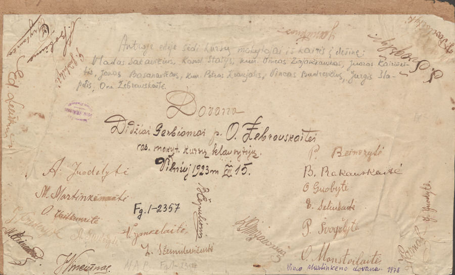 Nuotraukoje kursų klausytojai ir mokytojai: Vladas Sakavičius, Konstantinas Stašys, kun. Vincas Zajančkauskas, Juozas Kairiūkštis, Jonas Basanavičius, kun. Petras Kraujalis, Vincas Budrevičius, Jurgis Šlapelis, Ona Žebrauskaitė.