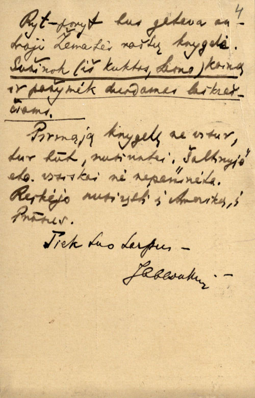 Vydūnas dėkoja J. Šlapeliui už korektūras.