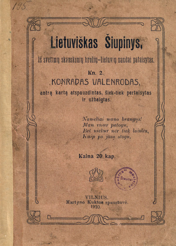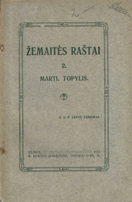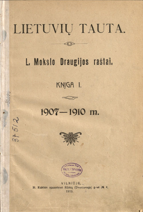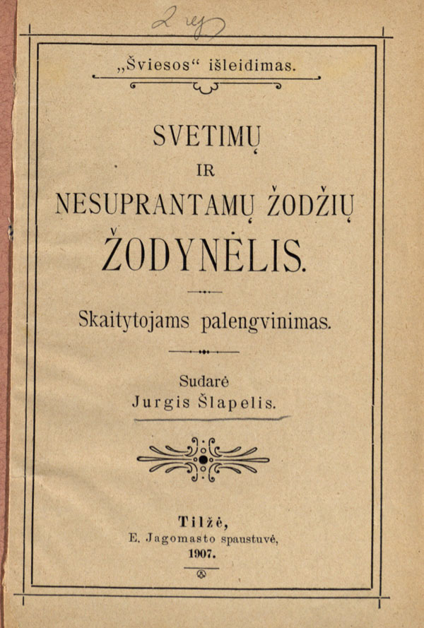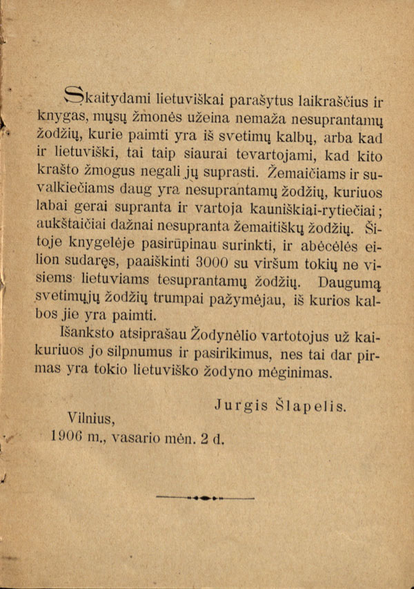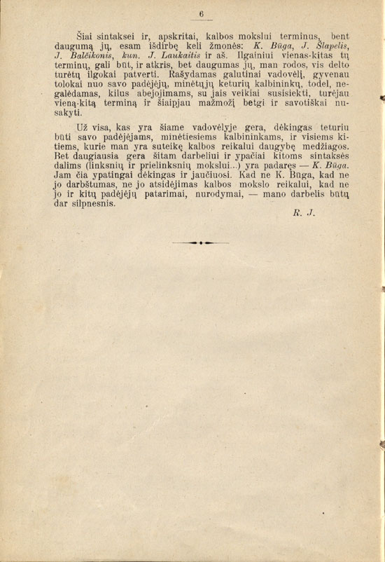 Pratarmėje dėkojama J. Šlapeliui už kalbos tvarkymą bei patarimus.