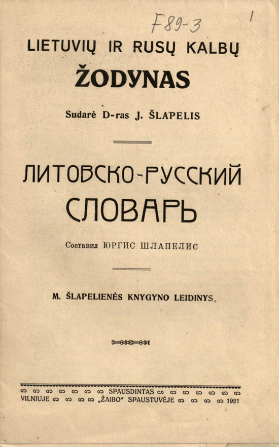 [Vilnius: s. n.], 1920–1922.