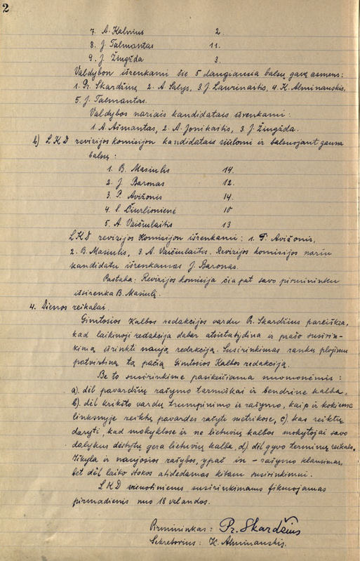 Pasirašė Pranas Skardžius ir Kazys Alminauskis.