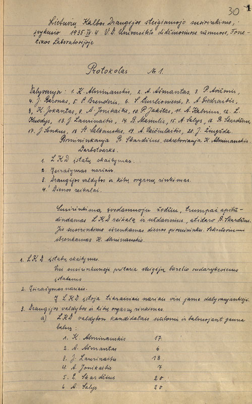 Lietuvių kalbos draugijos steigiamojo susirinkimo protokolas (1935-04-04)
