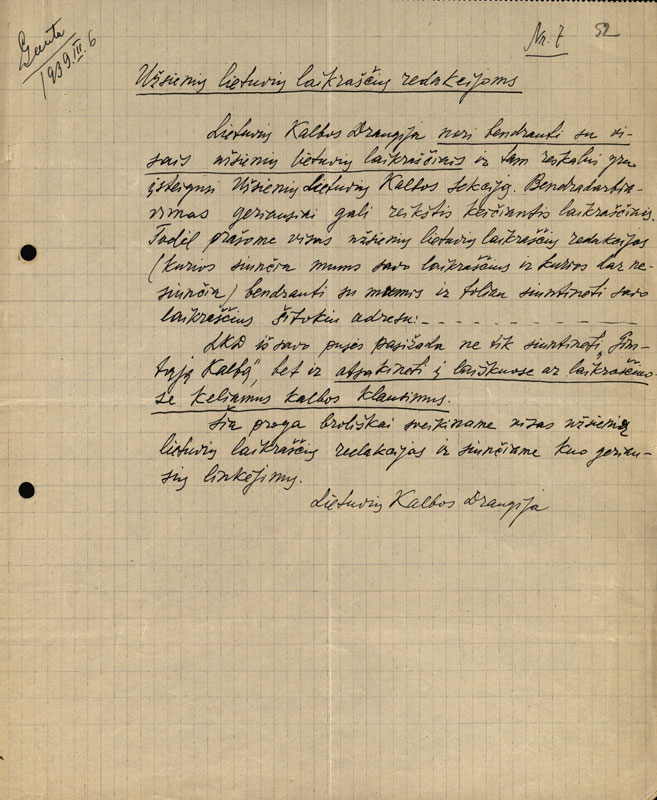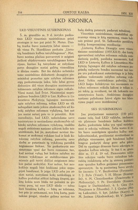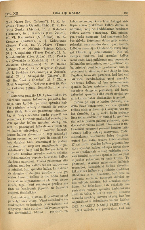 Tradiciniame „Gimtosios kalbos“ žurnalo kronikos skyrelyje papasakota apie Spaudos kalbos sekcijos susitikimą su spaudos darbuotojais, pasibaigusį sutarimu kas antrą savaitę rengti spaudos kalbos popietes.
