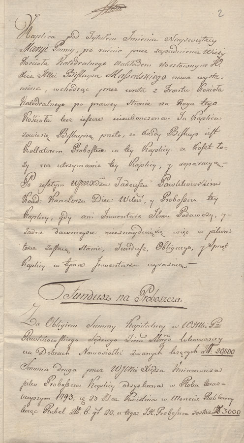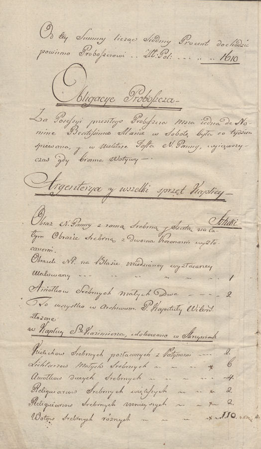 Vilniaus katedros Marijos Vardo koplyčios inventorius, sudarytas, atstačius apgriuvusią koplyčią (nowo wystawiona). Surašyta fundacija ir įpareigojimai koplyčios klebonui: giedotinės mišios šeštadieniais ir kai kuriomis Švč. Mergelės Marijos švenčių dienomis jos Vardo garbei. Išvardinti sidabriniai ir kiti koplyčios daiktai (dalis jų saugota skryniose Šv. Kazimiero koplyčioje), tarp kurių paminėtas ir arkibrolijos albumas, aptaisytas aksomu ir sidabru (Księga Bracka we Srebro na Aksamicie oprawna), votai.