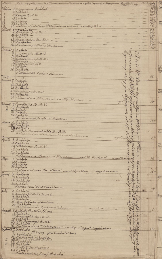 Įrašas lapo šone patikslina, kad vargonininkui ir kalikantui sumokėta ne iš aukų skrynelės, bet iš lėšų, gaunamų platinant „knygeles apie Marijos Vardą“ (greičiausiai turimas mintyje minėtas 1845 m. leidinys). Vargonininkui už giedotines Mišias sumokėta po 50 kapeikų, už grojimą Mišiose – po 15 kapeikų, kalikantui – po 15 kapeikų.