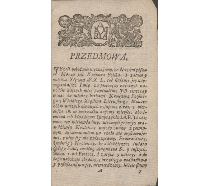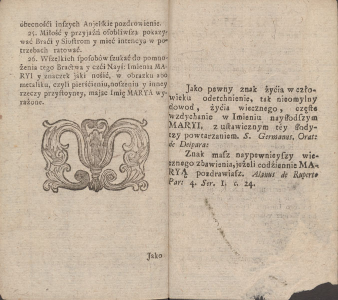 Kanauninko Tomo Korsako vardu sudaryta ir jam dedikuota knygelė, išleista nežinomo pijorų vienuolio. Autorius pristato Švč. Mergelės Marijos Vardo gerbimo kilmę ir istoriją, gaunamas malones. Pabaigoje pateiktos maldos Švč. Mergelės Marijos garbei. Knygelėje išspausdintas populiarios giesmės Maria gustum sentio vertimas į lenkų kalbą: Marya Twe Imię słodżi / Usta, wspomnieć, radość rodżi („Marija, tavo Vardas saldina lūpas, / jį paminėjus gimsta džiaugsmas“) (f. C4).