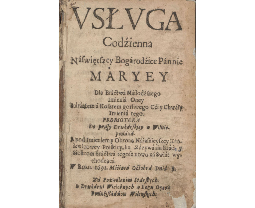 Pirmasis Lvivo kanauninko Jokūbo Gavato paruošto maldyno leidimas pasirodė 1647 m. Lvive. Pakartotiniai maldyno leidimai Vilniuje (1691 ir 1693 metais, antrąkart – jėzuitų akademijos spaustuvėje) buvo skirti Marijos Vardo arkibrolijai prie Vilniaus katedros.