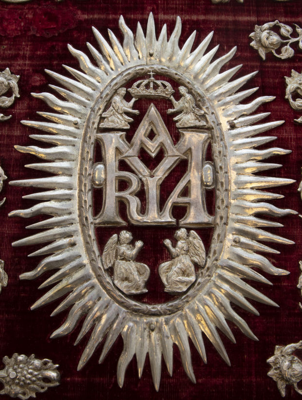 Švč. Mergelės Marijos vardo monograma, puošianti Saldžiausiojo Marijos Vardo arkibrolijos albumo antrąjį viršelį.
