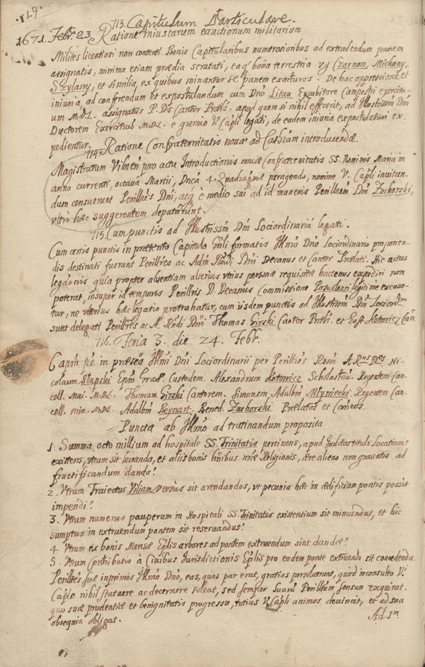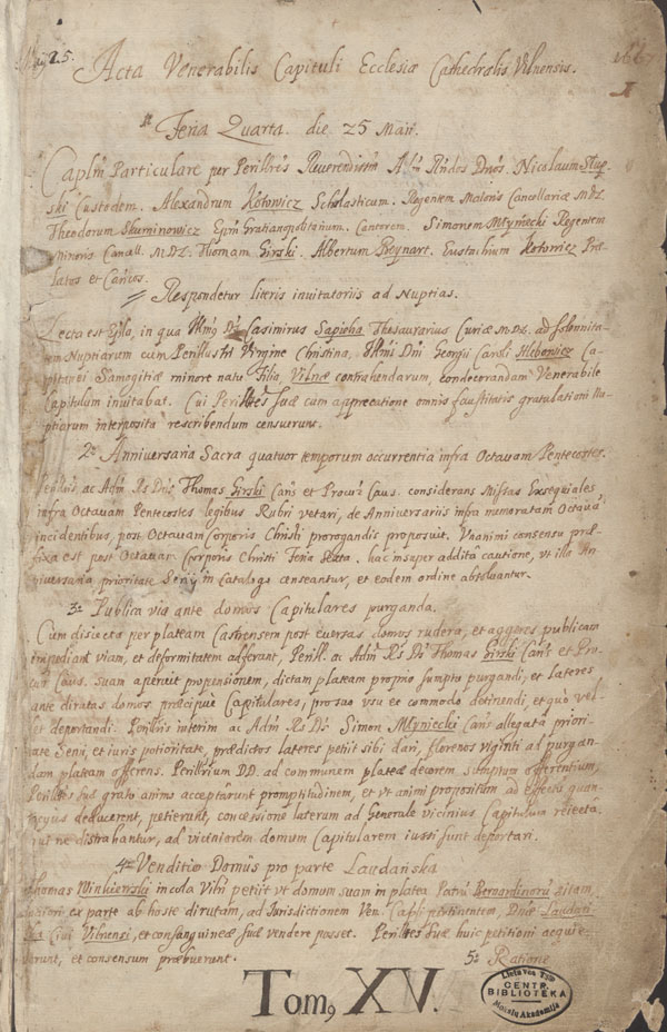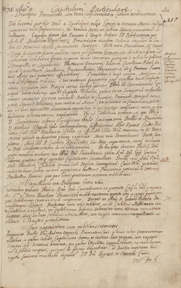Vilniaus katedros kapitulos neeilinės sesijos 1671 m. kovo 9 d. posėdžio protokole (nr. 735) smulkiai aprašytos išvakarėse vykusios iškilmės: