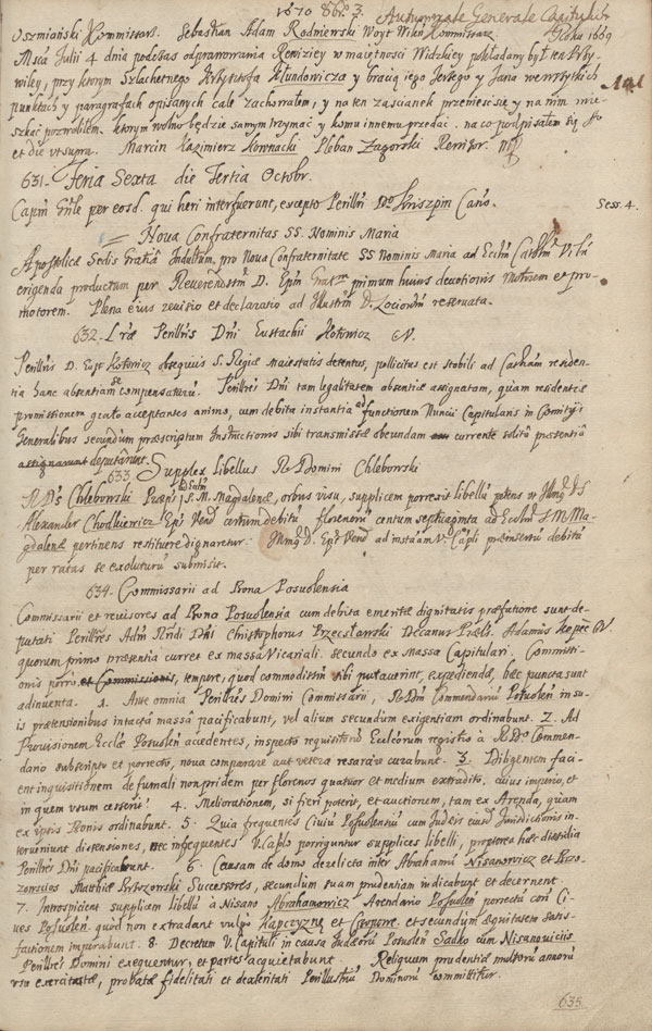 Vilniaus katedros kapitulos rudens sesijos ketvirtajame posėdyje vienas iš svarstytų klausimų (nr. 631) – Apaštalų Sosto suteiktas leidimas (indultas) steigti Švenčiausiojo Marijos Vardo titulo arkibroliją prie Vilniaus katedros. Leidimą išrūpino Gracianopolio vyskupas Mikalojus Slupskis, kuris kapitulos posėdžio protokole pavadintas „pamaldumo Marijos Vardui pirmuoju vykdytoju ir skatintoju“ (primum huius devotionis motorem et promotorem). Galutinis sprendimas paliktas vietos vyskupui.
